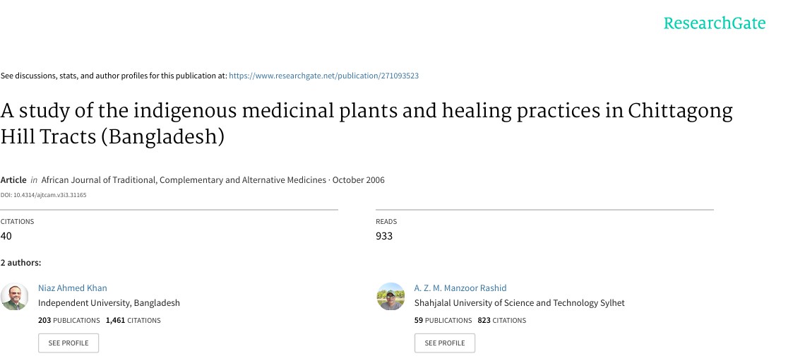 A study of the indigenous medicinal plants and healing practices in Chittagong Hill Tracts (Bangladesh)