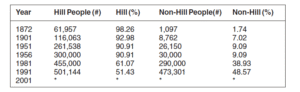 *Curiously the 2001 Census does not provide a figure categorising hill people and Bengalis in the CHT.